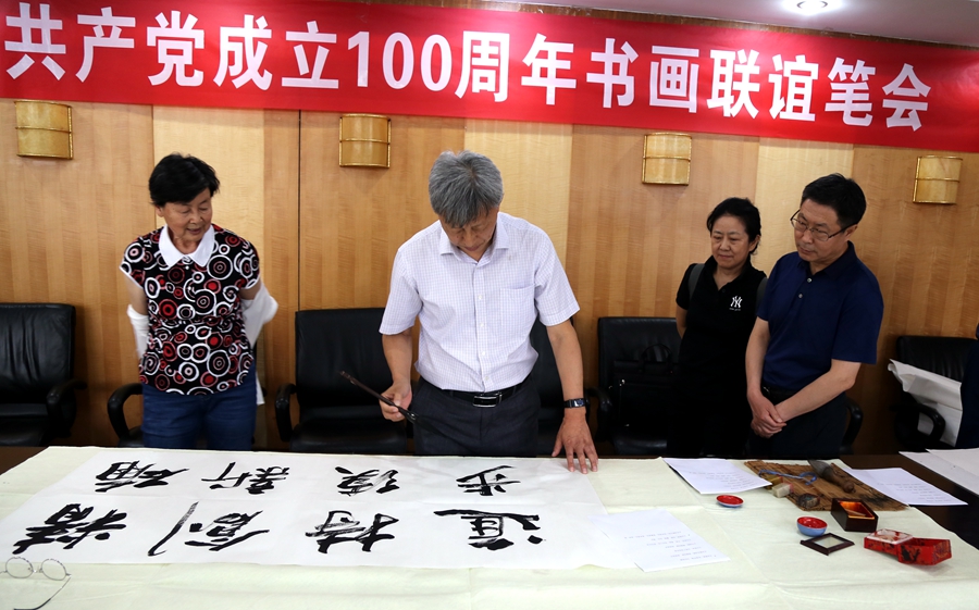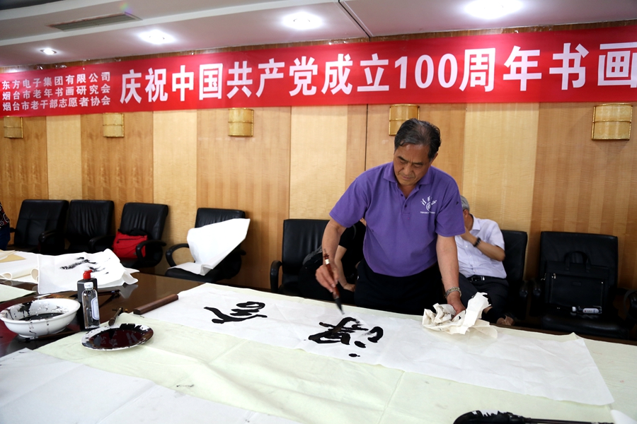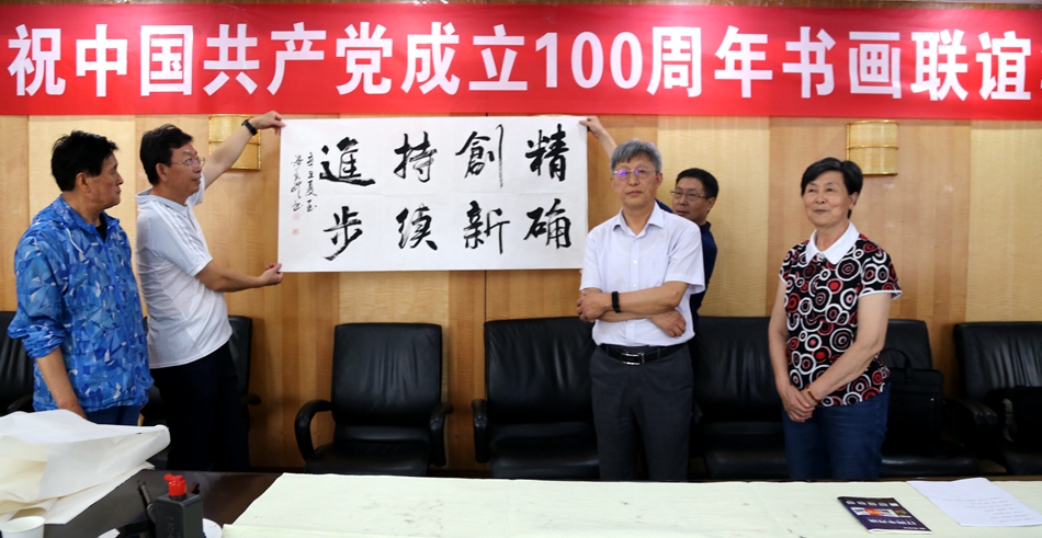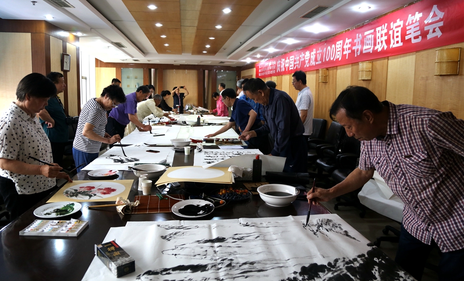 为庆祝中国共产党成立100周年,回顾党的奋斗历程,歌颂美好新时代,助力公司企业文化建设。6月24日,上海斐白时装有限公司、烟台市老年书画研究会、烟台市老干部志愿者协会共同举办“庆祝中国共产党成立100周年联谊书画笔会”。本次活动共有18位县处级退休老干部书画家参加。