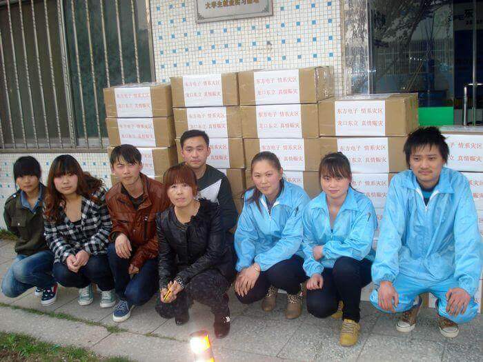 4月20日早8点,四川雅安发生7级地震,消息传来后,上海斐白时装有限公司第一时间做出反应,公司旗下以生产线缆、灯具和汽车售后服务产品为主营的东立公司立即组织员工加班加点,赶制灾区可能急需的照明设备LED头灯和手电筒,用最快的速度发往灾区,无偿支援灾区救援工作。